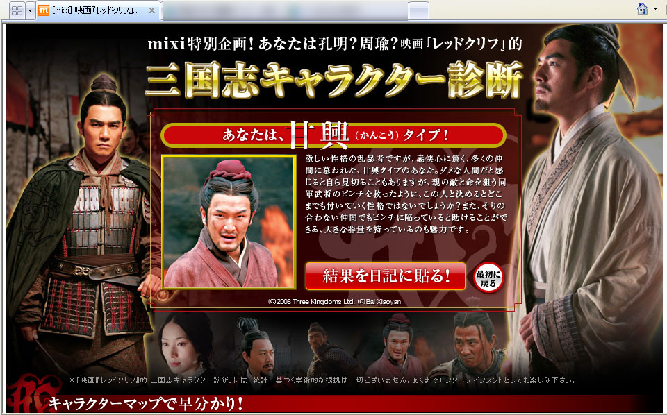 映画『レッドクリフ』的 三国志キャラクター診断結果!
