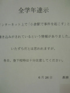 講義終了後、掲示板を見てみたら、こんな掲示が。