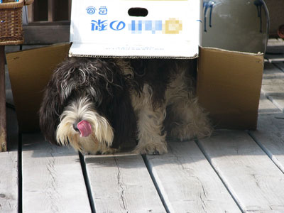 2:エディがおもちゃ(最近はサザエのカラ)をとりに行ってる隙に、裏口から家の中へ。
