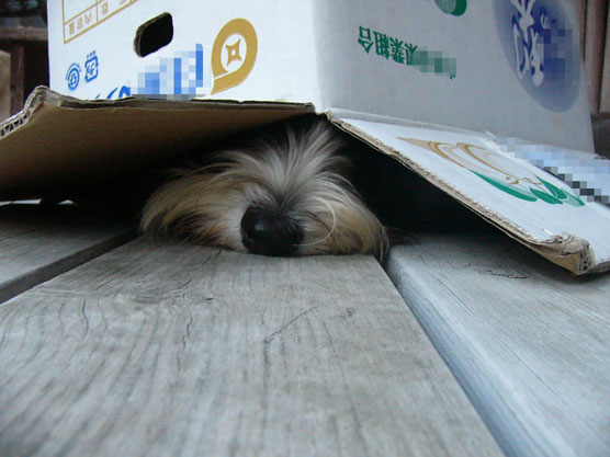 最近、発情期に入ったのか落ち着きが無く吼えてばかりなので、あまりに度が過ぎる場合はダンボールを被せてお仕置きされてしまいます。