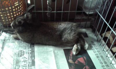 家に帰ったらウサギが餌箱振り回して待ってましたorzひとしきり暴れた後、「撫でれ」と頭を出してきたのでナデナデしてました。