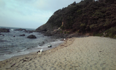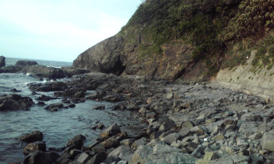大岩を通り抜けると、砂浜からはちょうど死角になった湾に出た。