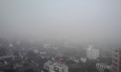 普段は遠くに山が見えるのに、近くの建物すら見えない状態でした。